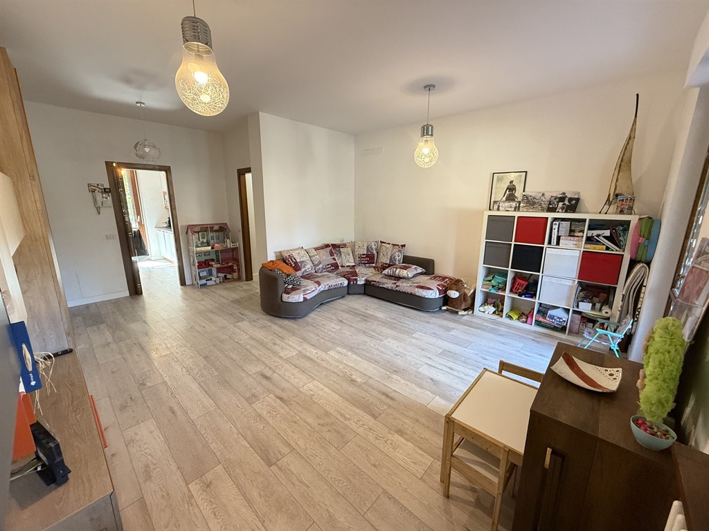Elegante trilocale con doppi servizi, giardino privato, terrazzo e box