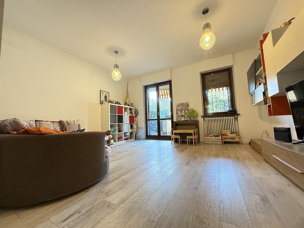 Soggiorno luminoso con accesso al terrazzo loggiato